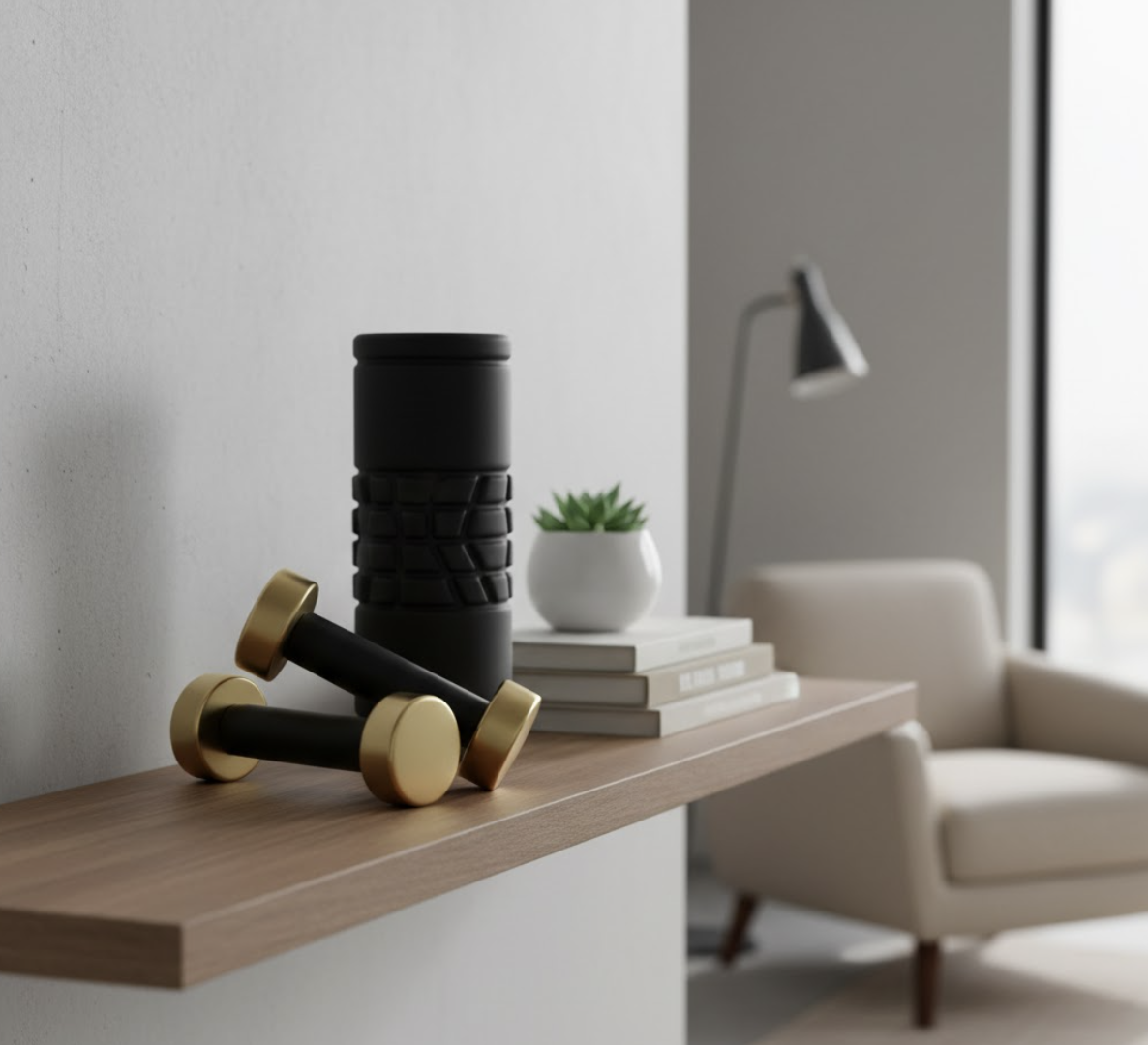 • 디자인 덤벨 활용: 최근에는 원목, 스틸 등으로 디자인된 고급 덤벨이 많습니다. 이들을 인테리어 선반이나 거실장 위에 올려놓고 오브제처럼 활용합니다.