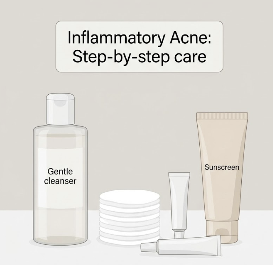 • 청결 유지 하루 두 번 순한 클렌저로 세안하여 과도한 피지와 노폐물을 제거합니다. 손으로 얼굴을 자주 만지거나 여드름을 짜는 행동은 2차 감염과 흉터를 유발하므로 피해야 합니다.