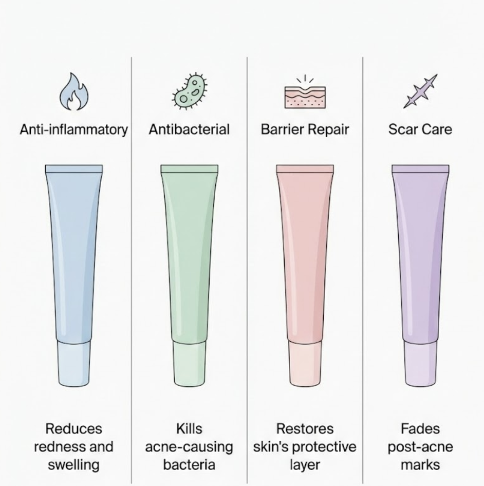 • 작용 원리 여드름균의 증식을 억제하고 염증을 줄여줍니다.