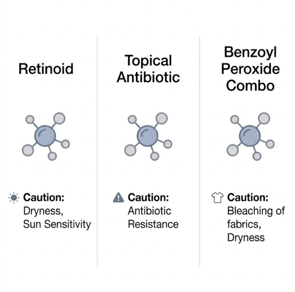• 특징 여드름 치료에 매우 효과적이지만, 초기 사용 시 피부 건조, 각질, 홍반, 따가움 등의 부작용이 흔하게 나타날 수 있습니다. 광과민성이 있어 밤에만 바르고, 낮에는 반드시 자외선 차단제를 사용해야 합니다.