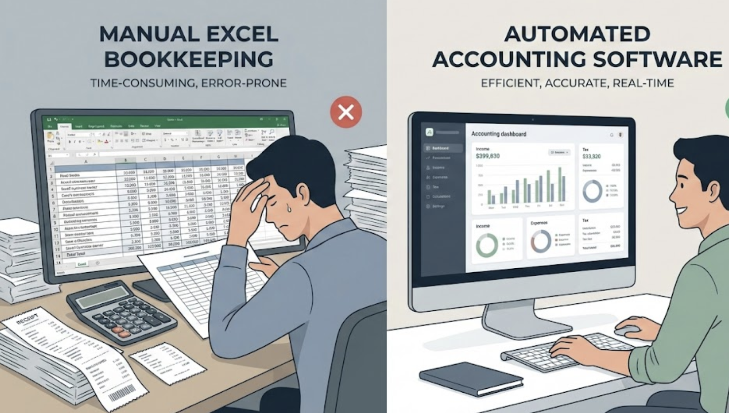 사업 초기에는 무료 엑셀 템플릿이나 상업용 프로그램의 무료 버전으로 시작하여 회계 관리의 기본을 익히고, 자신의 사업에 어떤 기능이 필요한지 파악하는 시간을 갖습니다. 이 단계에서는 비용을 전혀 들이지 않고 회계 시스템을 구축하는 경험을 쌓을 수 있습니다.