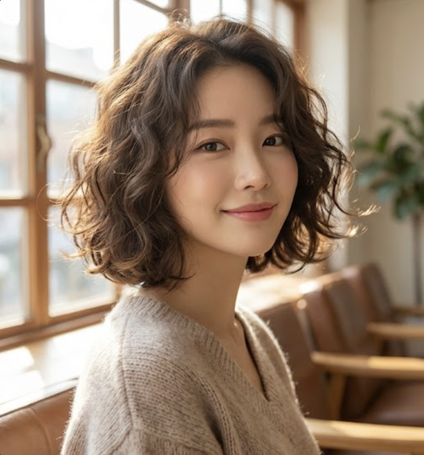 단발 기장에서 히피펌은 발랄하고 사랑스러운 매력을 극대화합니다. 턱선 위로 올라오는 짧은 기장에 풍성한 웨이브가 더해지면, 마치 어린아이처럼 순수하고 귀여운 느낌을 주면서도 동시에 트렌디한 분위기를 연출할 수 있습니다. 특히 앞머리까지 웨이브를 넣어주면 더욱 통통 튀는 개성을 표현할 수 있습니다.