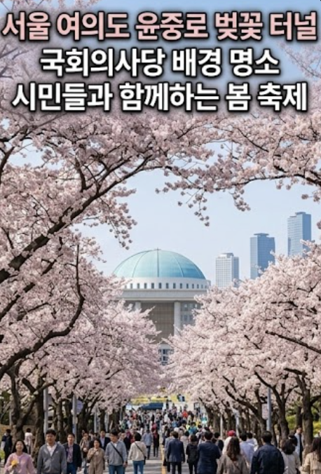 여의도 윤중로는 서울의 대표적인 벚꽃 명소로, 매년 많은 인파가 몰립니다. 조금 더 한적한 곳을 원한다면 남산공원이나 서울숲도 좋은 선택입니다.