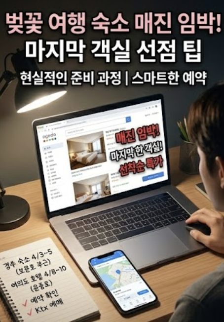 - 위치 관광지와의 접근성, 대중교통 이용의 편리성 등을 고려해야 합니다. 특히 벚꽃 시즌 경주처럼 인기 많은 곳은 이동 시간을 줄여주는 위치가 중요합니다.
