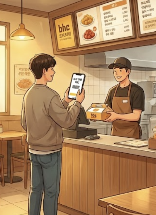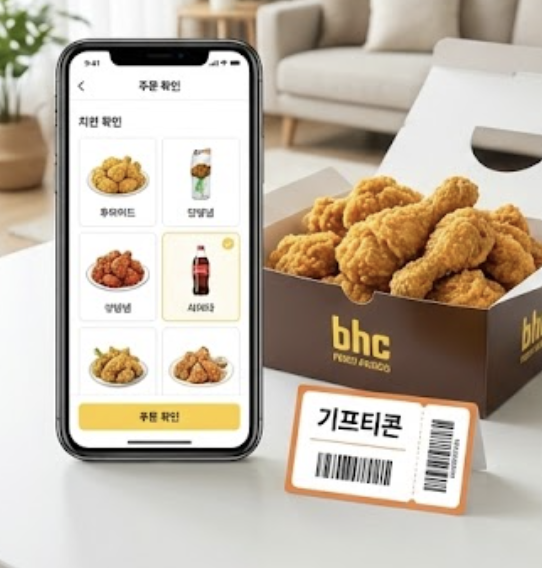 - 매장 선택 및 메뉴 담기: 배민 앱에서 BHC 매장을 선택하고, 기프티콘에 명시된 메뉴를 장바구니에 담습니다. 기프티콘 외에 추가로 주문하고 싶은 메뉴가 있다면 함께 담아주세요.