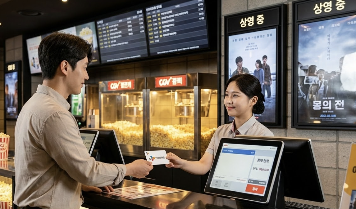 - CGV: 영화 티켓 구매, 매점 이용 (팝콘, 음료 등)