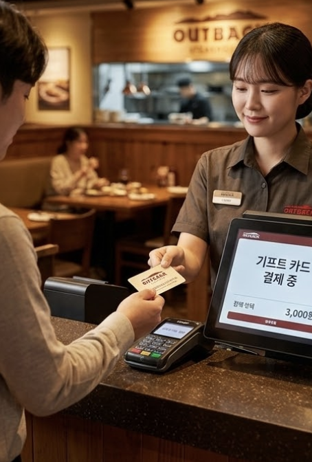 기프트카드는 아웃백 매장에서 현금처럼 편리하게 사용할 수 있습니다.