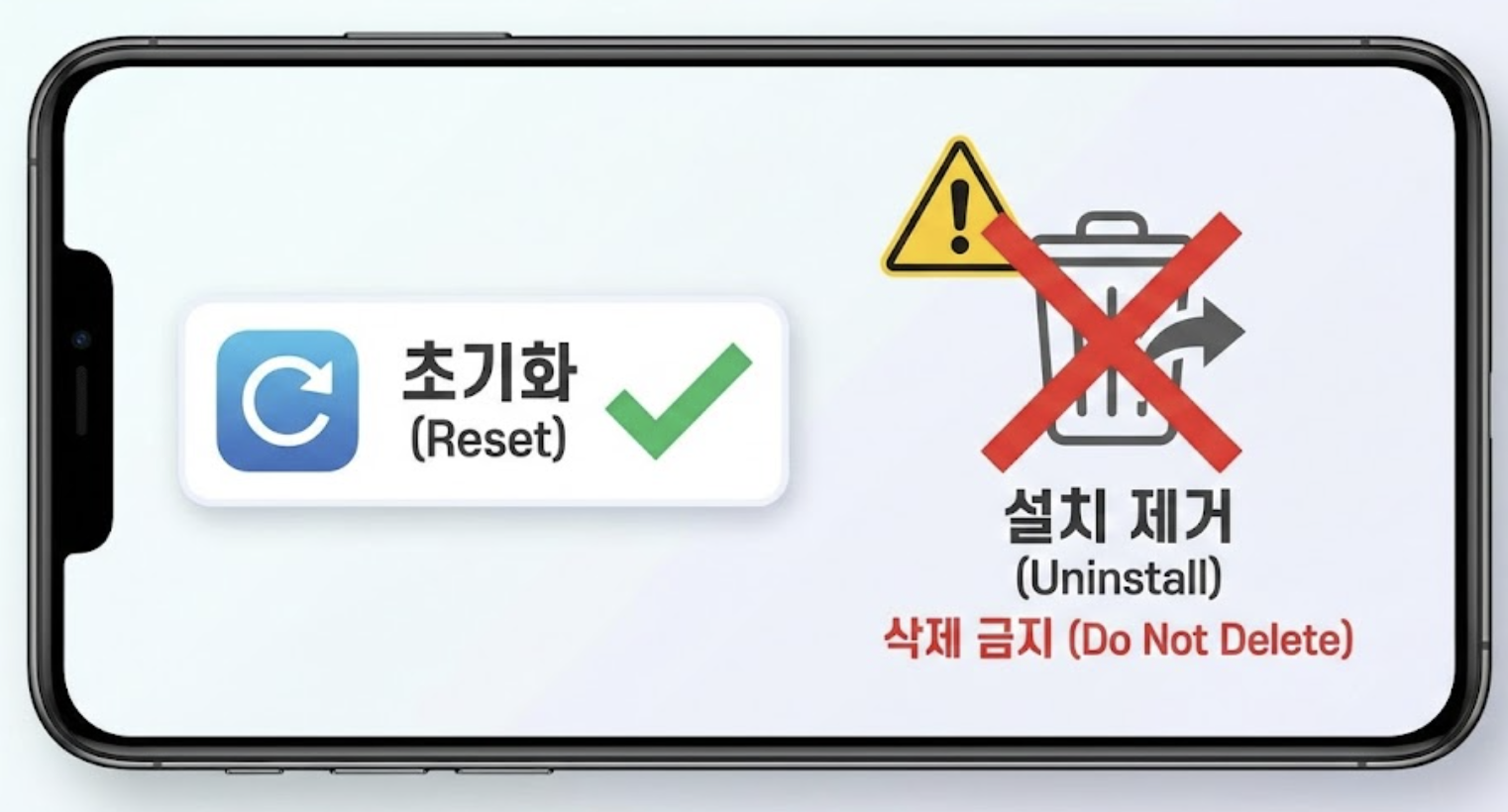 iOS 기기에서는 앱을 완전히 삭제하고 재설치하는 것이 가장 확실한 초기화 방법입니다.