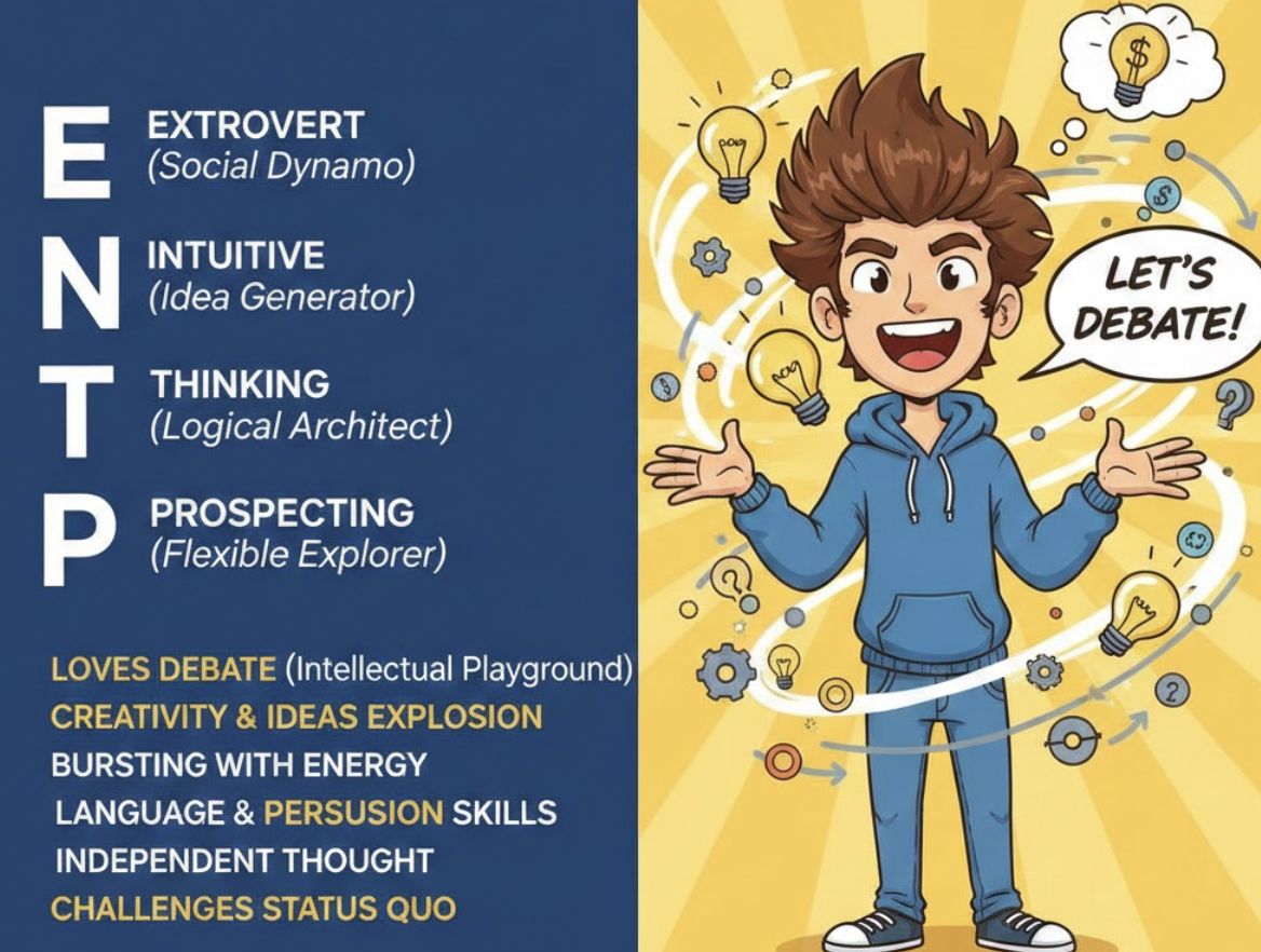 - 뜨거운 논쟁가: ENTP는 논쟁을 즐깁니다. 하지만 감정적인 싸움이 아닌, 지적인 유희로서의 논쟁을 선호하죠. 새로운 아이디어를 탐구하고, 기존의 관념에 도전하는 것을 즐깁니다.