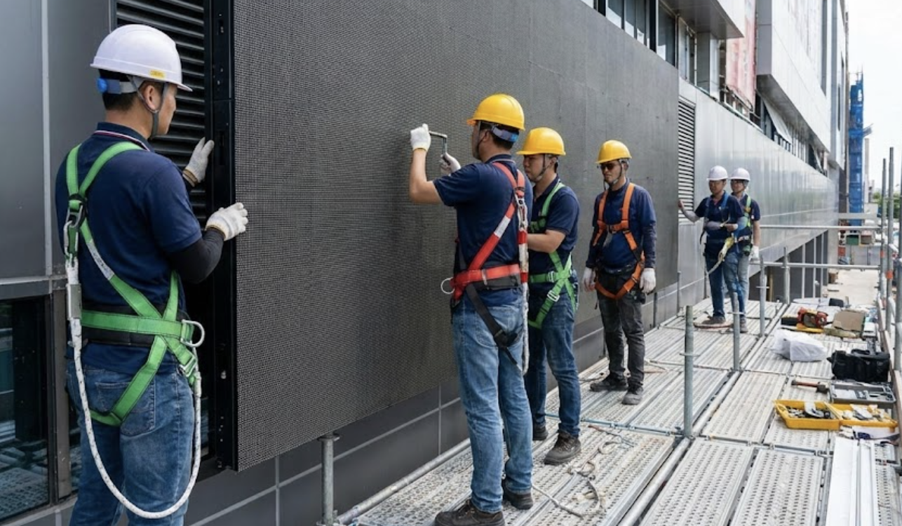 - 설치 방식 및 난이도 벽면 부착, 스탠드형, 돌출형, 천장형 등 설치 방식과 현장 상황에 따른 공사 난이도에 따라 설치 비용이 달라집니다. 고소 작업이나 복잡한 구조물 설치가 필요한 경우 비용이 증가합니다.