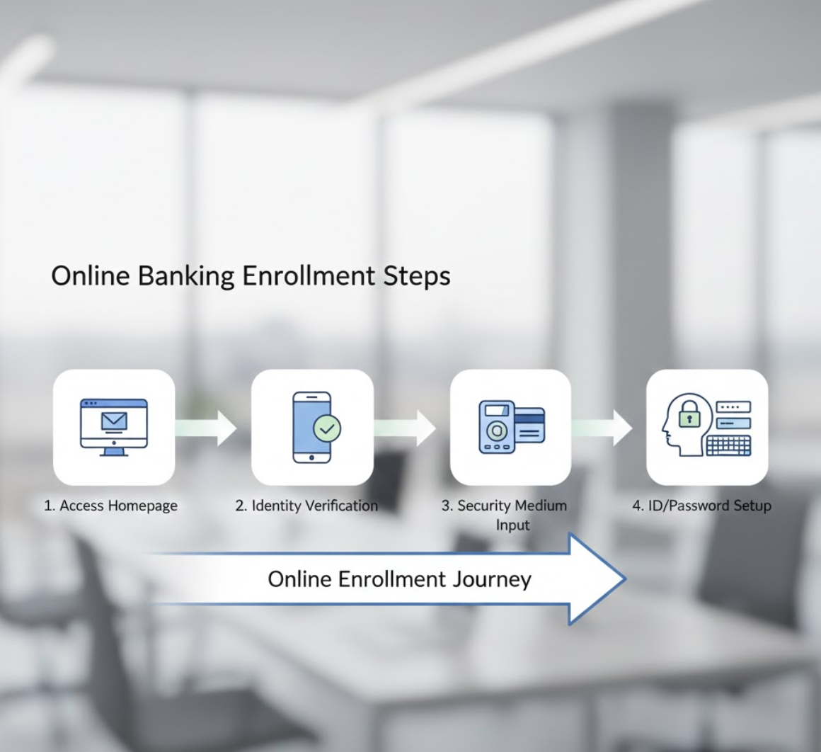 - 인터넷뱅킹에서 사용할 아이디와 비밀번호를 설정합니다. 비밀번호는 영문, 숫자, 특수문자를 조합하여 안전하게 설정하는 것이 중요합니다.